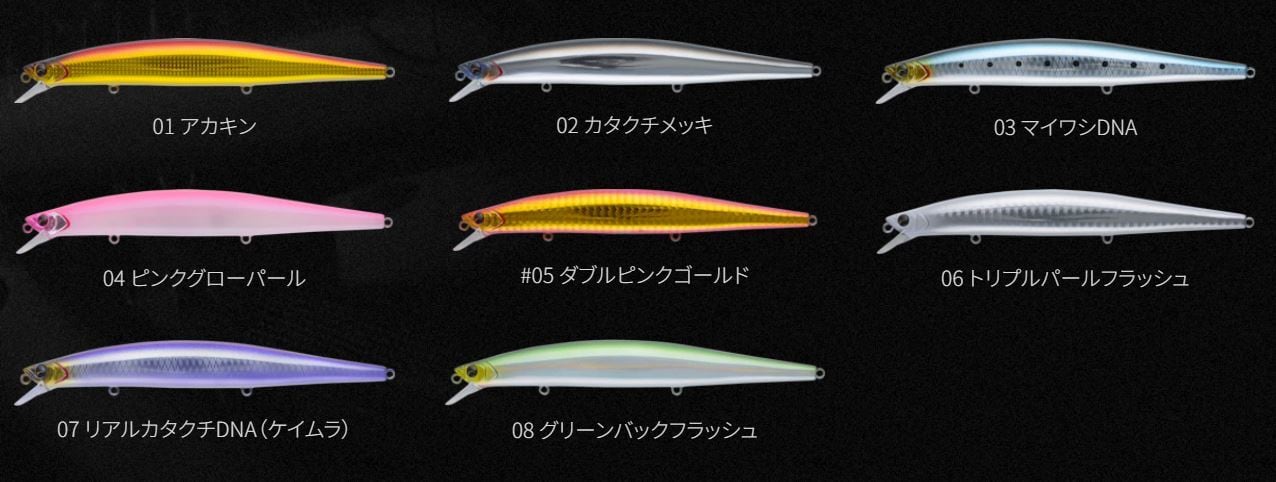 『シーマ』とはロシア語でサクラマスという意味。海サクラマス、海アメマスを魅了するアクション、要素がこのルアーには詰まっており、アピアオリジナル重心移動システム『リニアエンジン(PAT.P)』を搭したことによりクラス最高峰の飛距離を実現。早巻きでもアクションが破綻することがない安定したウォブンロールアクションは、フィッシュイーターから逃げ惑うベイトを演じる。デイゲームにおける光量の多い時間帯はスローにアクションすると見切られることもあるため、高速巻きでパニックを起こしたベイトを演出しターゲットのスイッチが入りバイトへと導くことも重要となる。しかし、高速巻きやジャーキングでバランスを崩し水中から飛び出してしまうルアーだと見切られてしまう。CIMA140SLはデイゲームにおける中・高速巻きやジャーキングにおいても安定した姿勢をキープし、逃げ惑うベイトを完全再現。フィッシュイーターの本能を刺激し、圧倒的なバイト数を叩き出す。