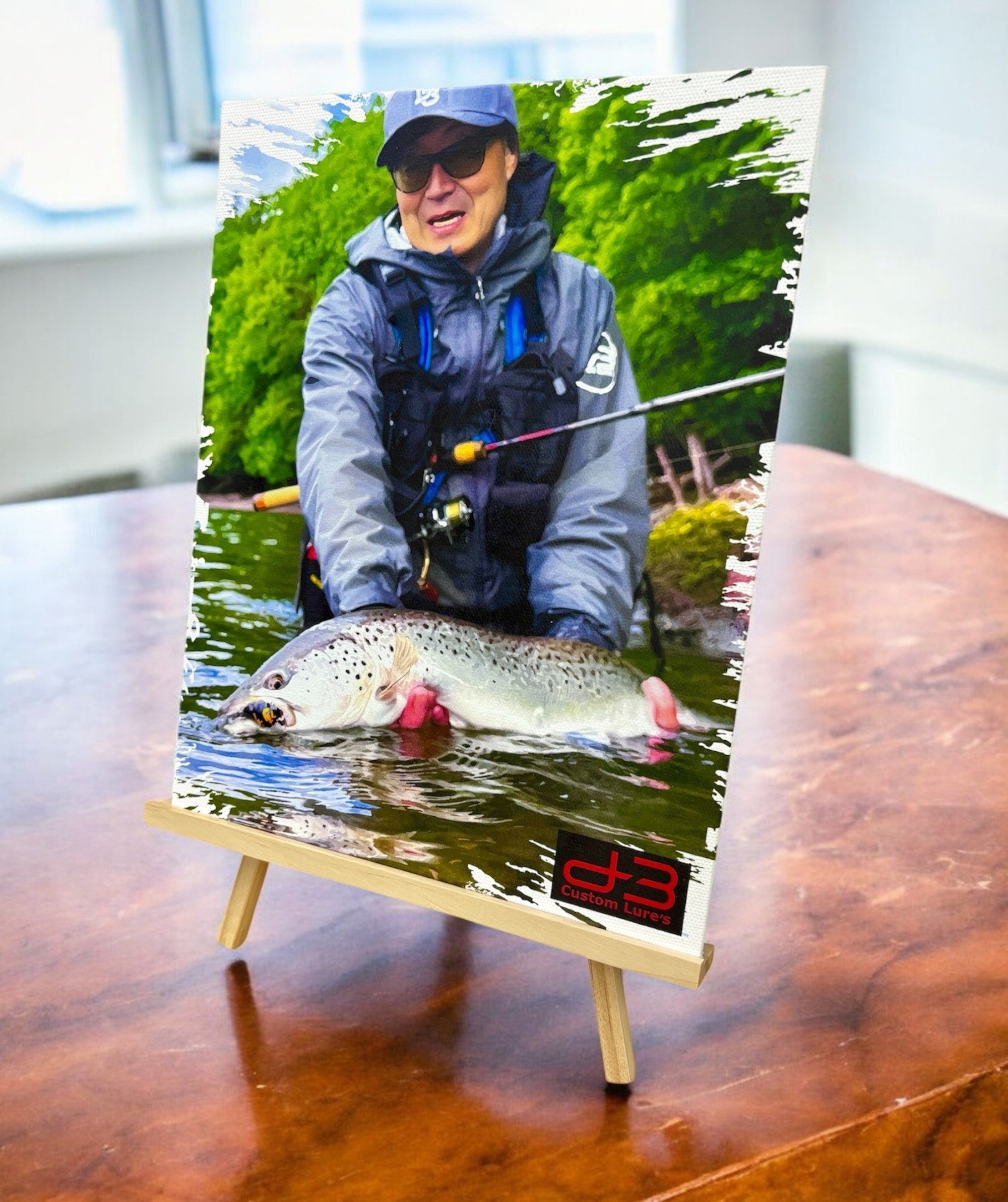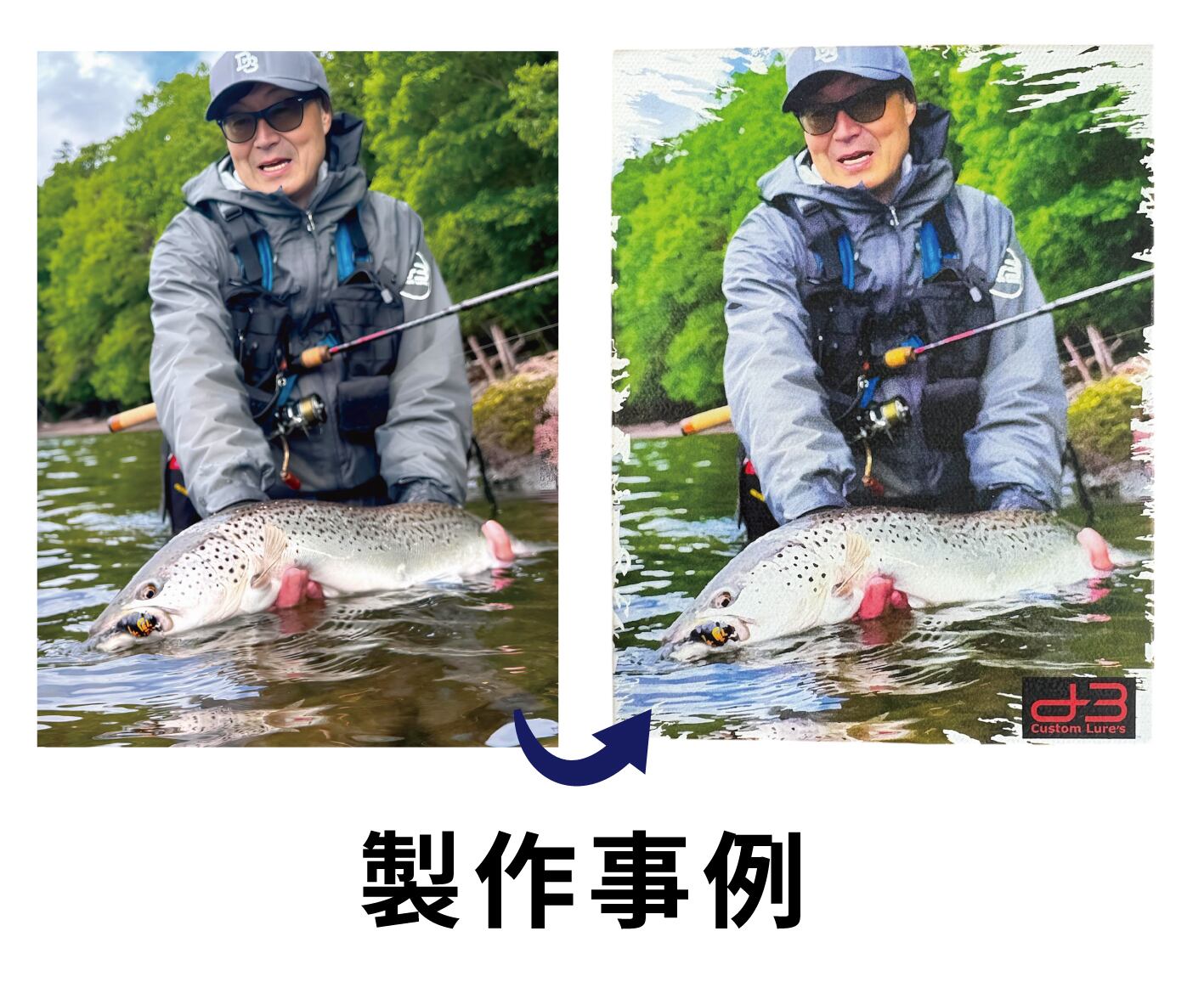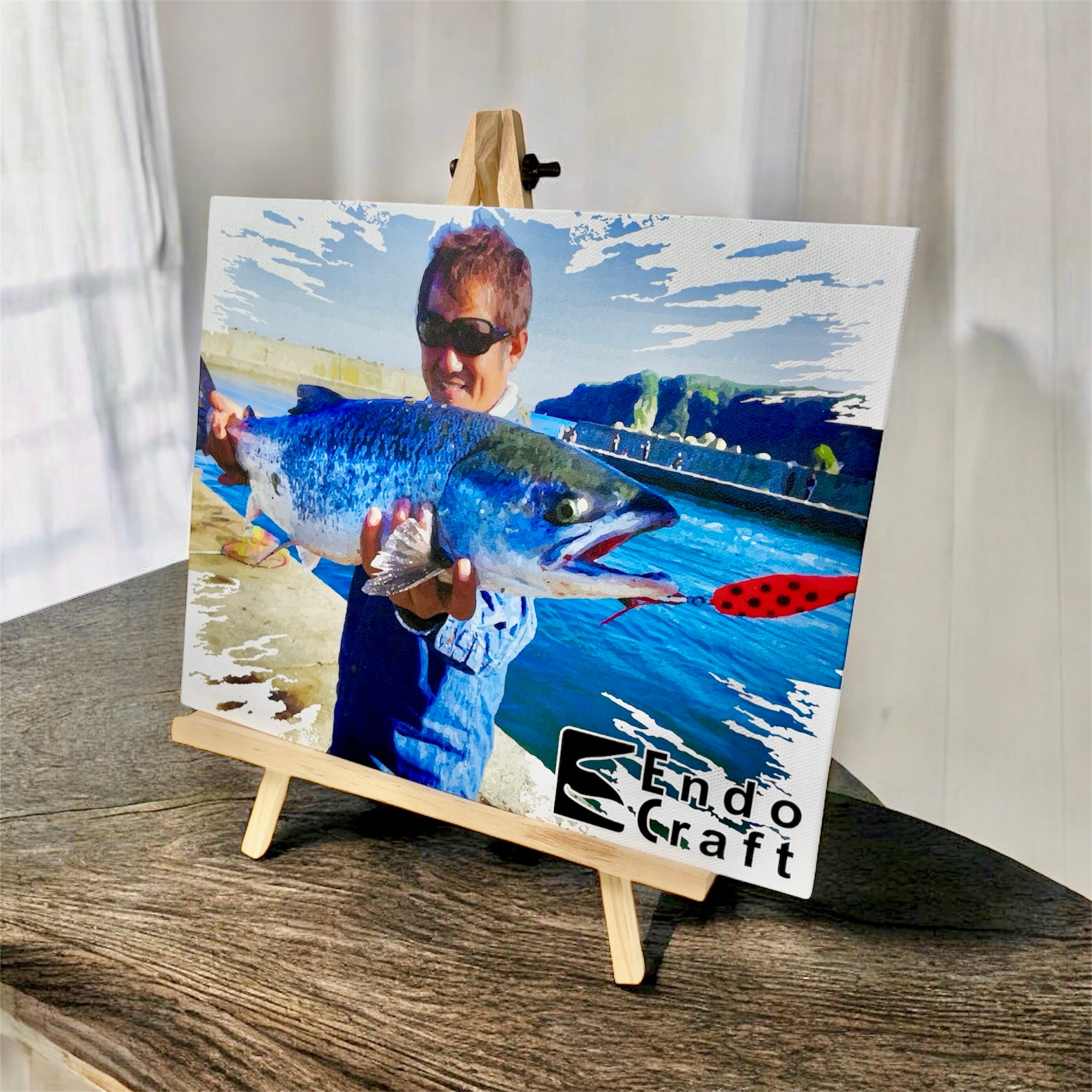 記念の釣果写真を、手描き風のタッチで丁寧に仕上げ